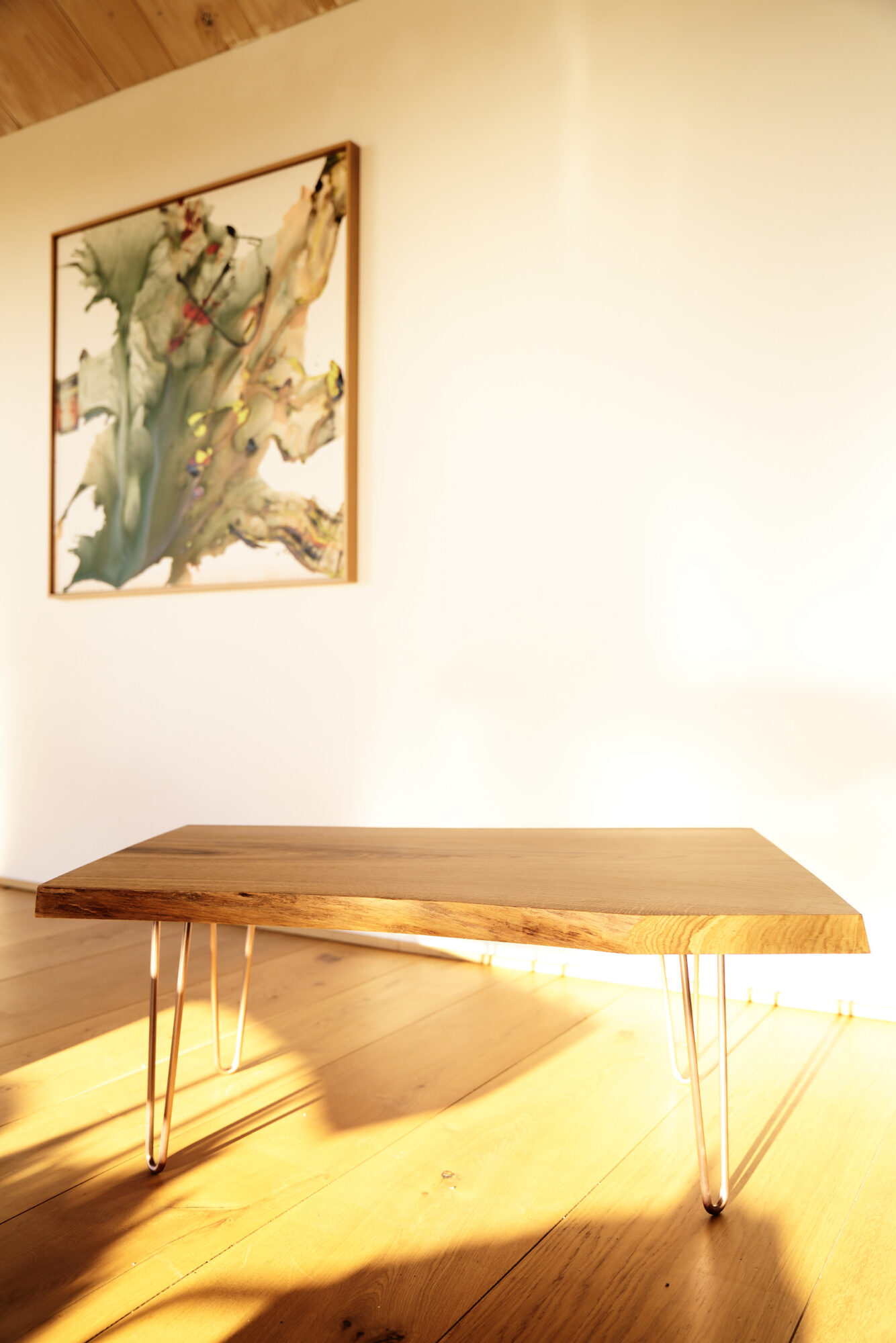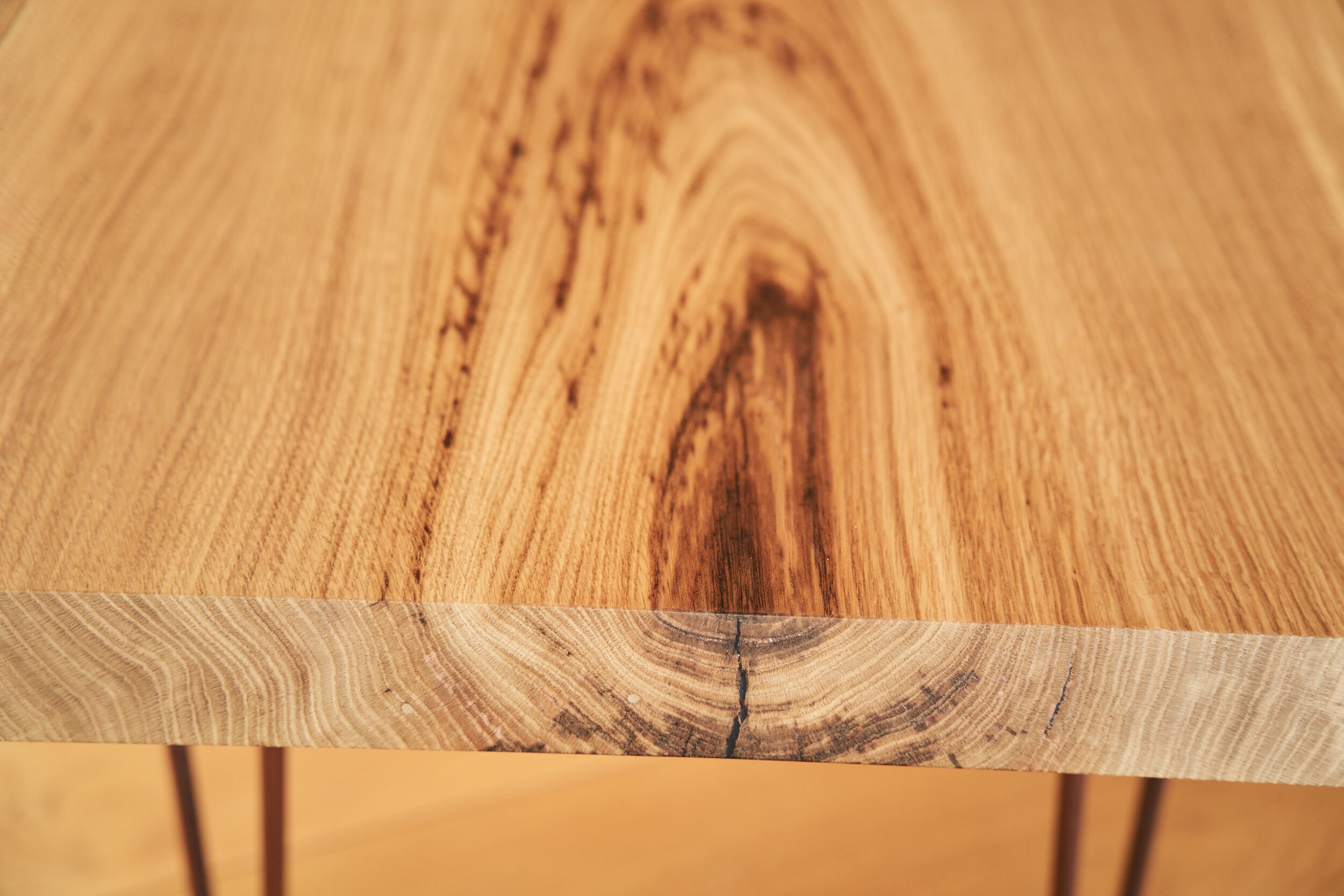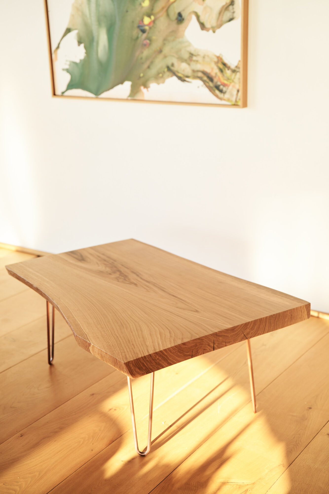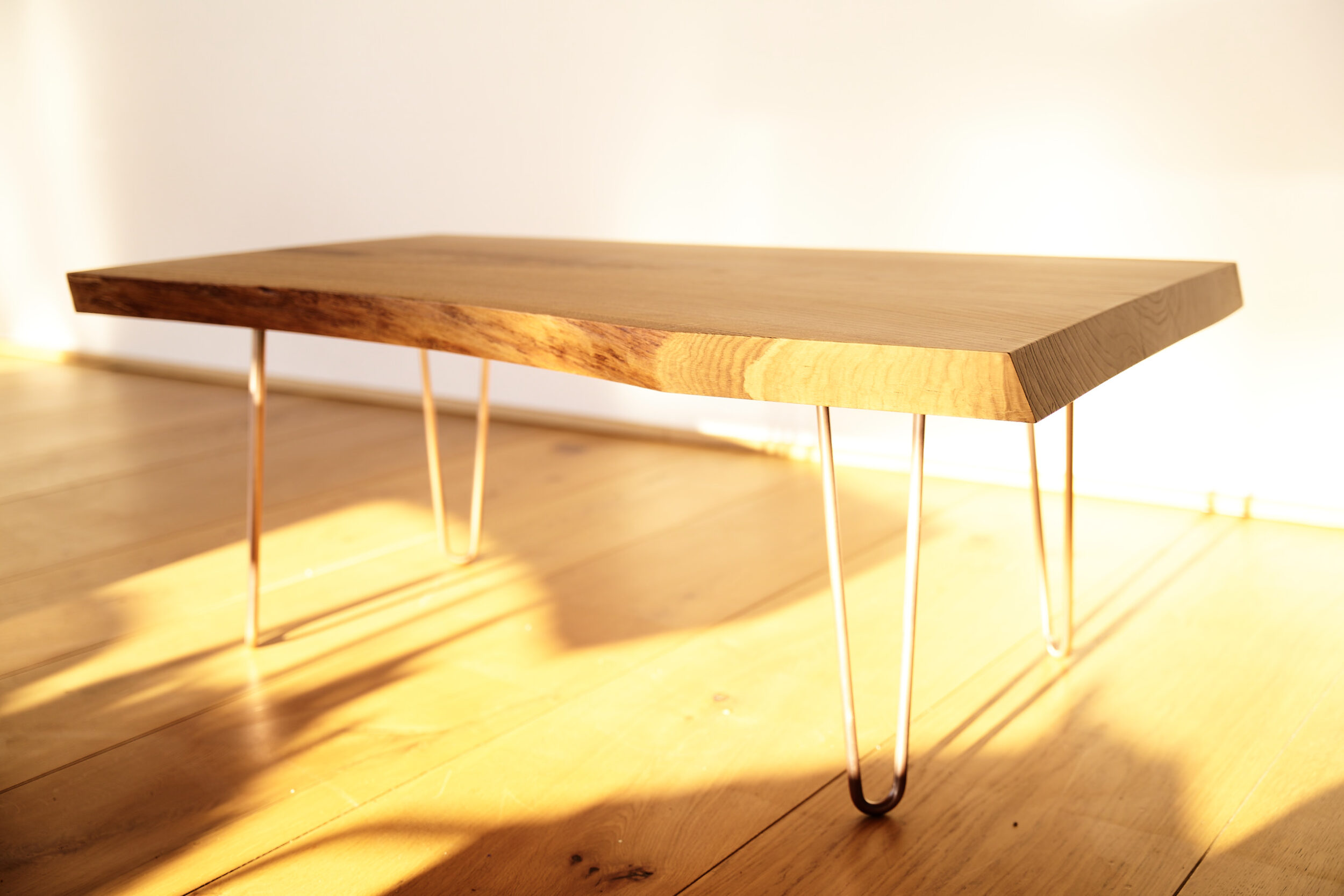 Dieser Eichenholz Couchtisch steht für ehrliches Handwerk und zeitlose Eleganz. Gefertigt aus einem Stück massiver Eiche, ganz ohne Verleimung zeigt er die natürliche Schönheit des Holzes in ihrer reinsten Form. Markante Maserung, warme Farbetöne und eine Ausstrahlung, die jeden Wohnraum aufwertet.